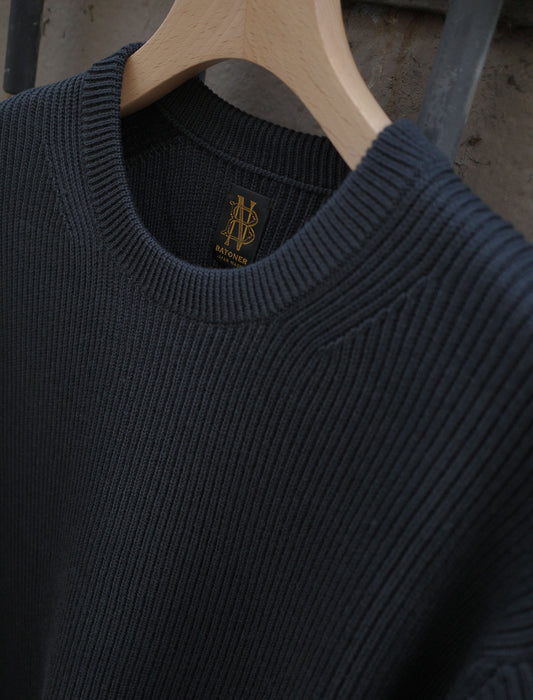 Solid Wool Rib Crewneck - Charcoal Blue