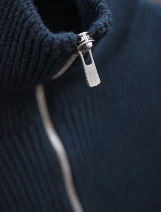 Solid Wool Rib Half Zip - Dark Green / Navy