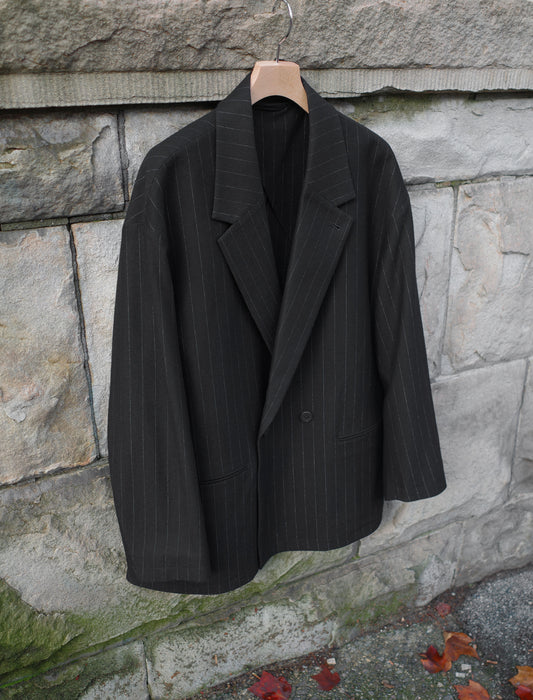 36G Wool Stripe Double Jacket - Black